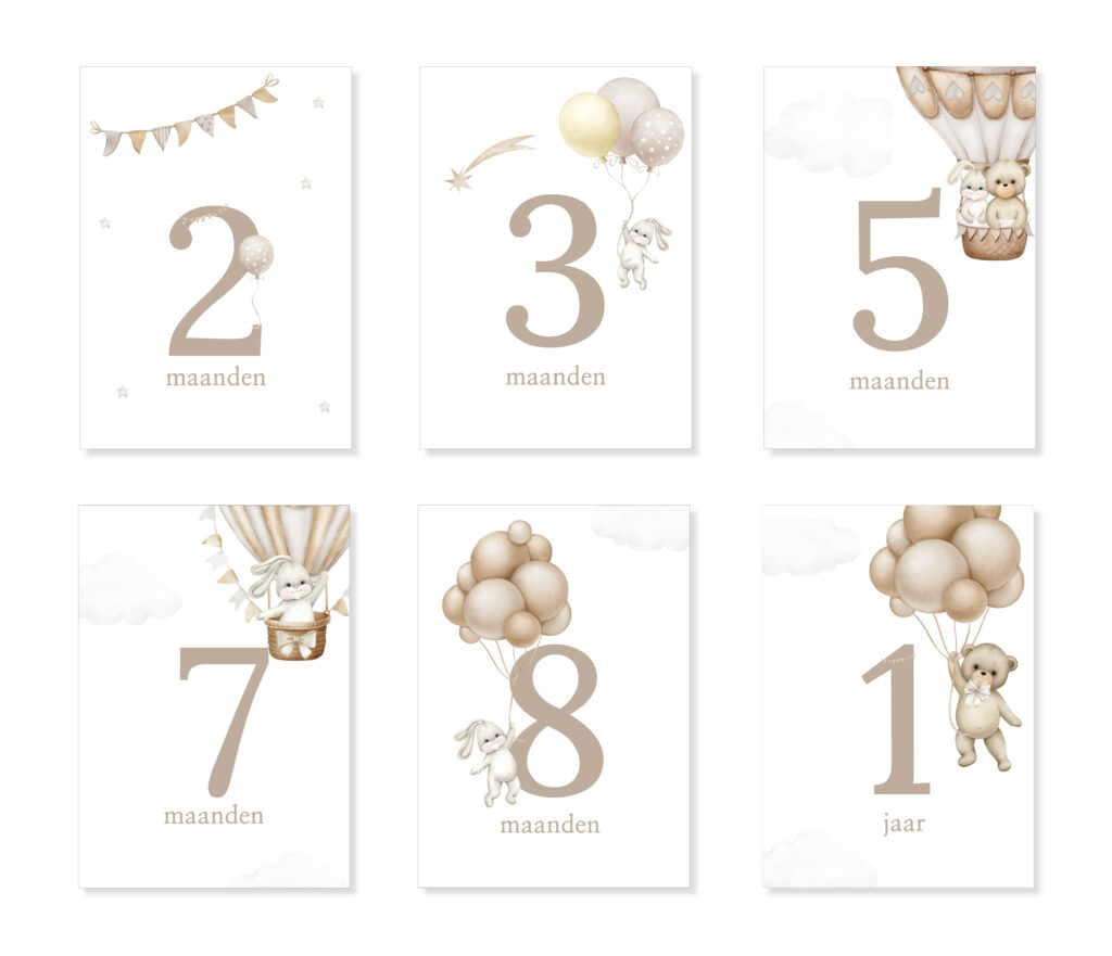 Deze set bevat 12 mijlpaalkaarten om de maanden mee vast te leggen, maand 1 t/m 1 jaar.